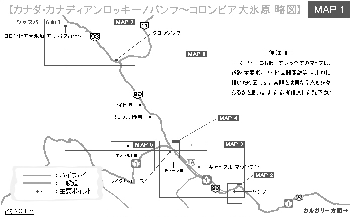 = バンフ〜コロンビア大氷原 簡易地図 =