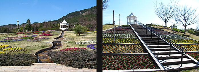 | 4月の見頃に備えてたくさんのチューリップが植えられていました。 |