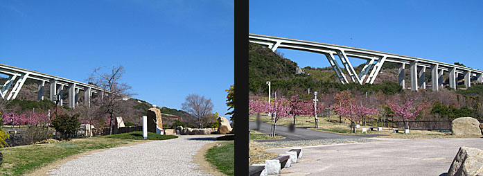 | 青い空と神戸淡路鳴門自動車道をバックに。 |