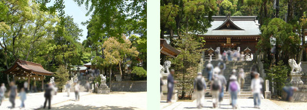 拝殿にて参拝後、正面の参道を通って次へと進みます。