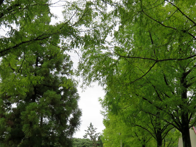 テニスコート近くのメタセコイア(?)並木。緑が綺麗です。