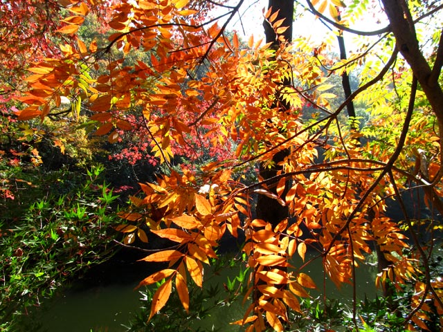 森林植物園西門辺りの紅葉。例年では黄色いイチョウと…